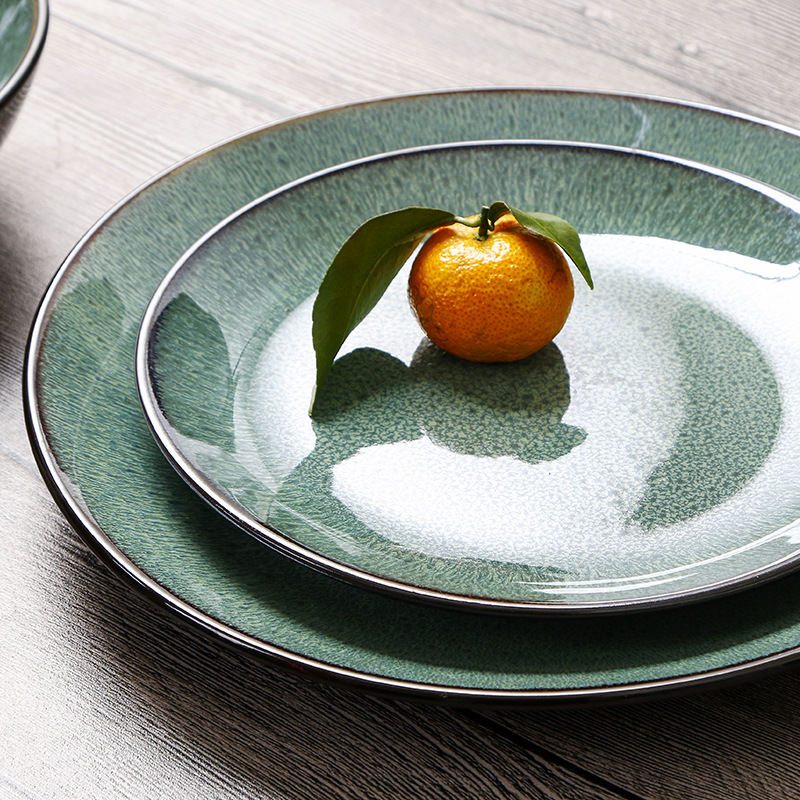 Creative Western Food Plate Vegetable Plate Kiln Change Peacock Green Bowl